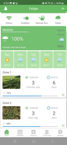 However, the app shows the zones having different moisture levels, and waters certain zones differently than others, even though the settings and system location are the exact same.